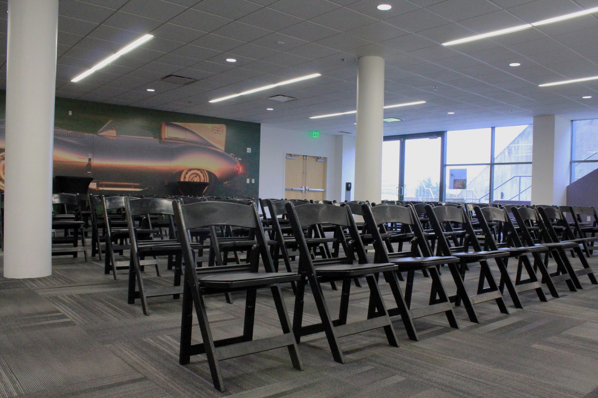 Upon request, the foyer just outside the banquet doors can be used for food, beverage, and cocktail needs. The space is also located on the same floor as our Photo Car and Speed Zone, making them a great pair to add-on to your rental. For smaller meetings, our boardroom can be set up to condense the space.